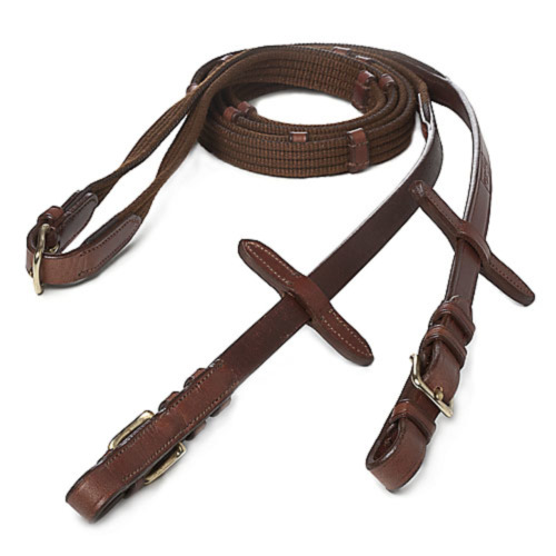 Riendas realizadas con lona muy resistente y topes de cuero. El cuero utilizado es cuero vegetal de primera calidad procedente de USA y curtido de forma ECOLÓGICA también en USA. Ancho 5/8 " . Posibilidad de hebillaje dorado ó inoxidable.