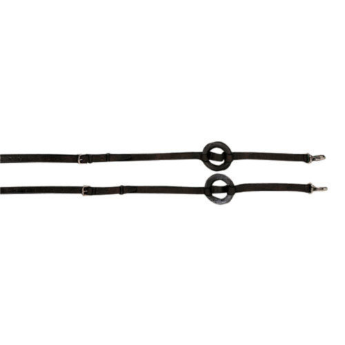Riendas de cuero y goma con mosqueton cromado resistente.