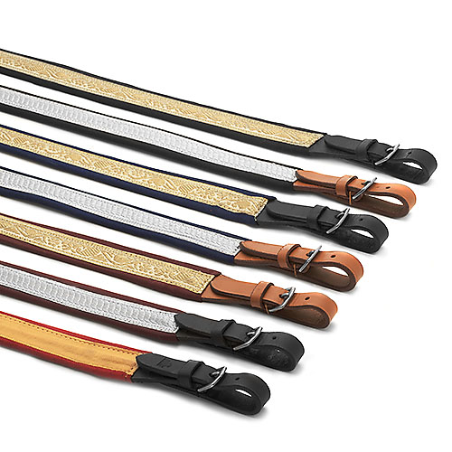 Realizado en cuero y forrado en tela. Se comercializa en varias combinaciones de color de cuero y tela.