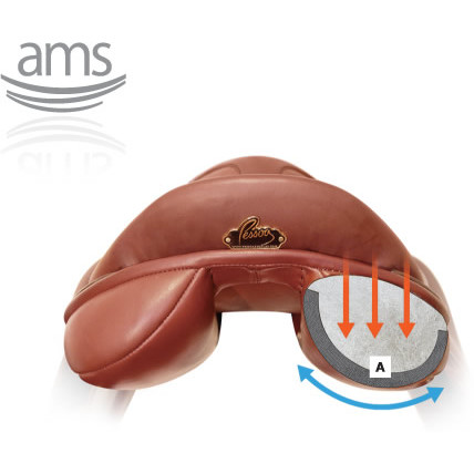 - Otros sistema que incorpora la silla son los bastes AMS que unido a la elasticidad de la armadura de fibra de carbono DUPONT de PESSOA, hacen que la montura se adapte perfectamente al dorso del caballo y le proporcionen el máximo confort. Los bastes AMS absorben los impactos y distribuyen la presión del peso del jinete sobre todo el dorso del animal evitando lesiones (ver foto).