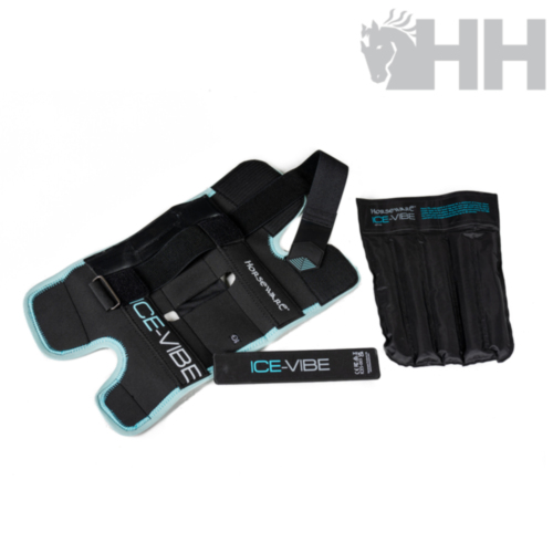 Nuevo diseño y mejora de funciones y de las tiras de cierre con velcro. Mismas características y funciones que el protector ICE-VIBE para tendón (ref.06953) pero adaptado y diseñado para el contorno y movimientos de la rodilla del caballo.