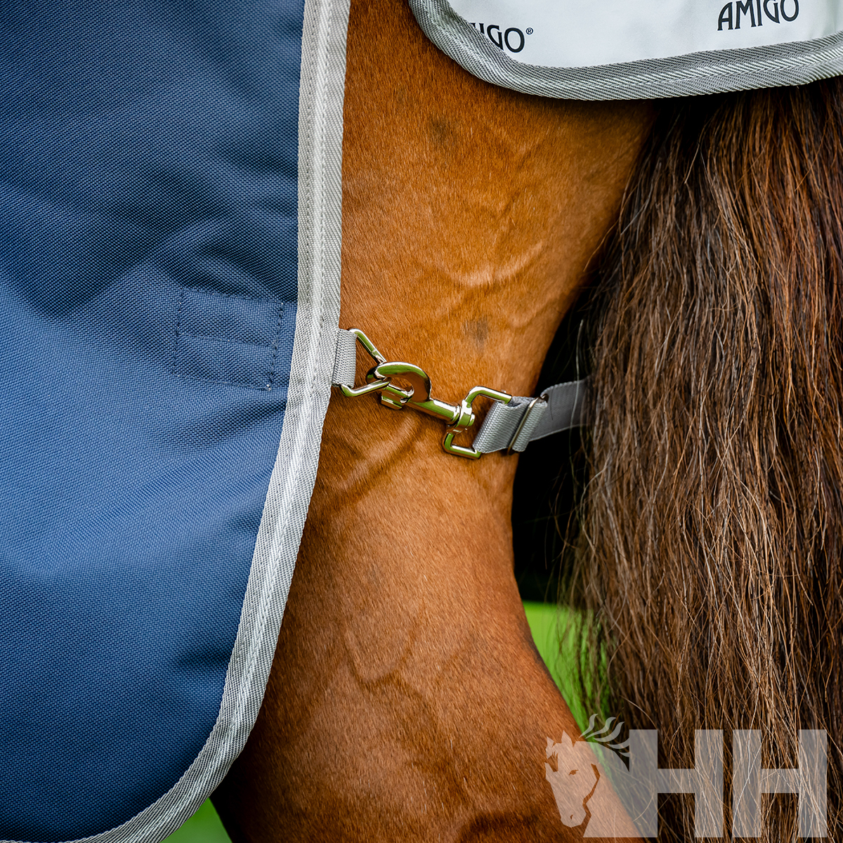 Nuestro sistema de cierre frontal en V seguro y fácil de usar, el cuello Surefit y el exclusivo diseño de arco de doble pierna permiten que su caballo se mueva y paste sin restricciones, mientras que el diseño de tres cinchuelos cruzados, la solapa de la cola y la correa de la cola ofrecen un ajuste ceñido y cómodo. Se incluye una capucha desmontable para mayor flexibilidad en la elección y tiras reflectantes para mejorar la visibilidad al salir, entrar o para controles nocturnos con antorchas. Amigo® tiene cubiertas sus necesidades y las de su caballo.