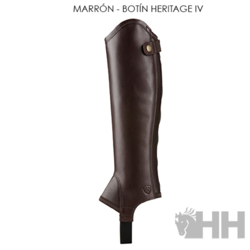 Nuevo color MARR”N a juego con el botÌn de hombre HERITAGE IV ref.04884 Polaina sin forro y fabricada en cuero liso suave con una inserciÛn de serraje en la parte interior de la pantorrilla para una mayor adherencia y resistencia al desgaste en el contacto de la pierna con la silla. Tiene un aspecto moderno con su corte de estilo espaÒol en la parte superior y gran ajuste a toda la pierna, para ayudar a que los jinetes tengan una figura m·s elegante. Posee un el·stico que le proporciona m·s amplitud en el ajuste y la cremallera trasera hace que sea f·cil de poner y llevar.