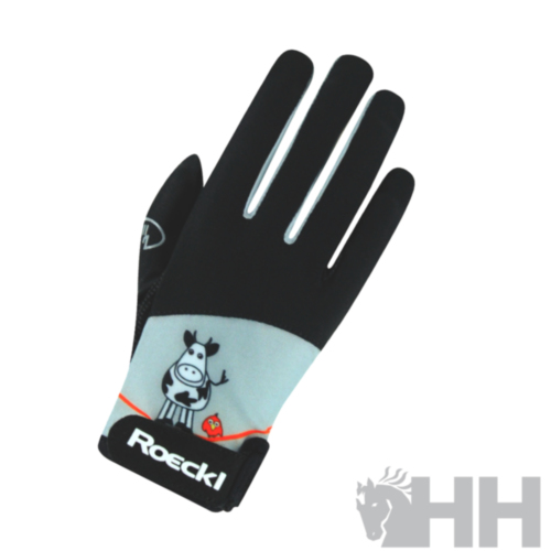 Guantes para niños con un diseño colorido y muy divertido. Fabricado con materiales de primera calidad como todos los productos ROECKL que protegen la mano del jinete pero a la vez le proporcionan un excelente agarre y tacto. Diseñados especialmente para adaptarse a las manos de los niños.