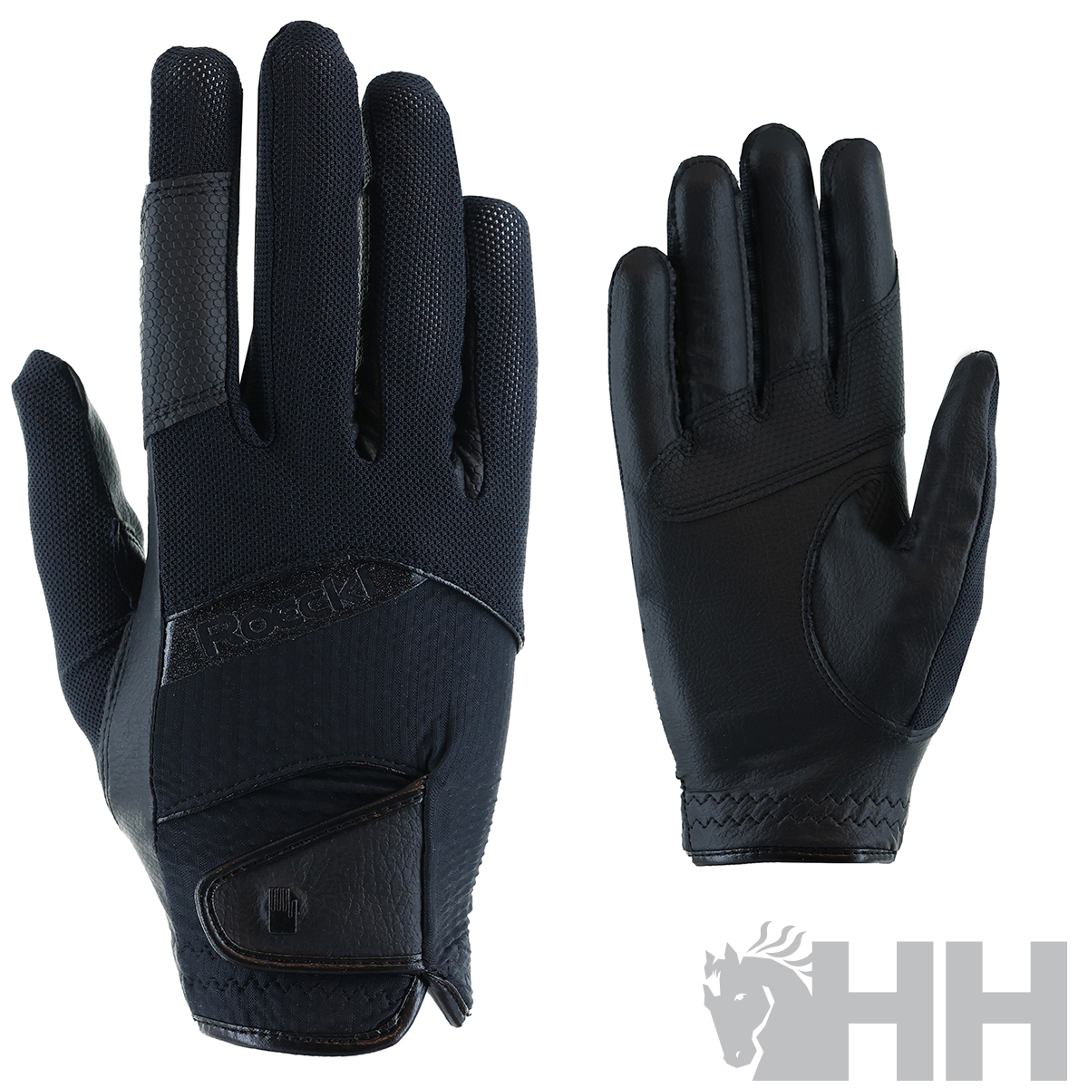 presenta un cierre adornado con una aplicación del logotipo de la mano de Roeckl Sports. Tanto el dedo índice como el pulgar son COMPATIBLES CON PANTALLA TÁCTIL, lo que te permite utilizar tu smartphone sin tener que quitarte los guantes.