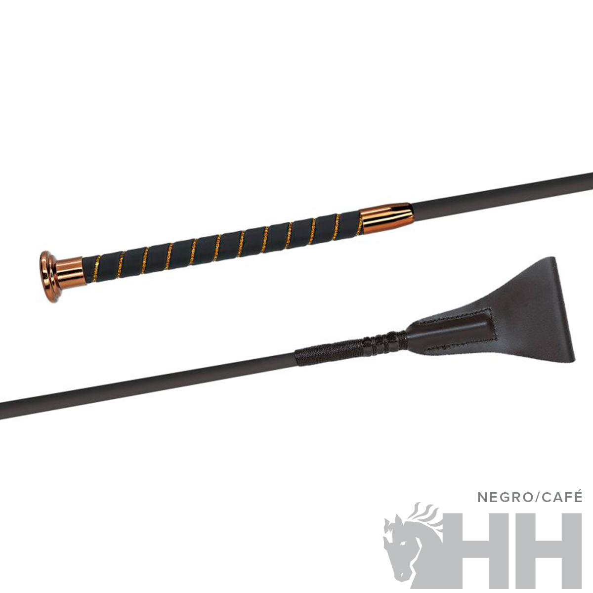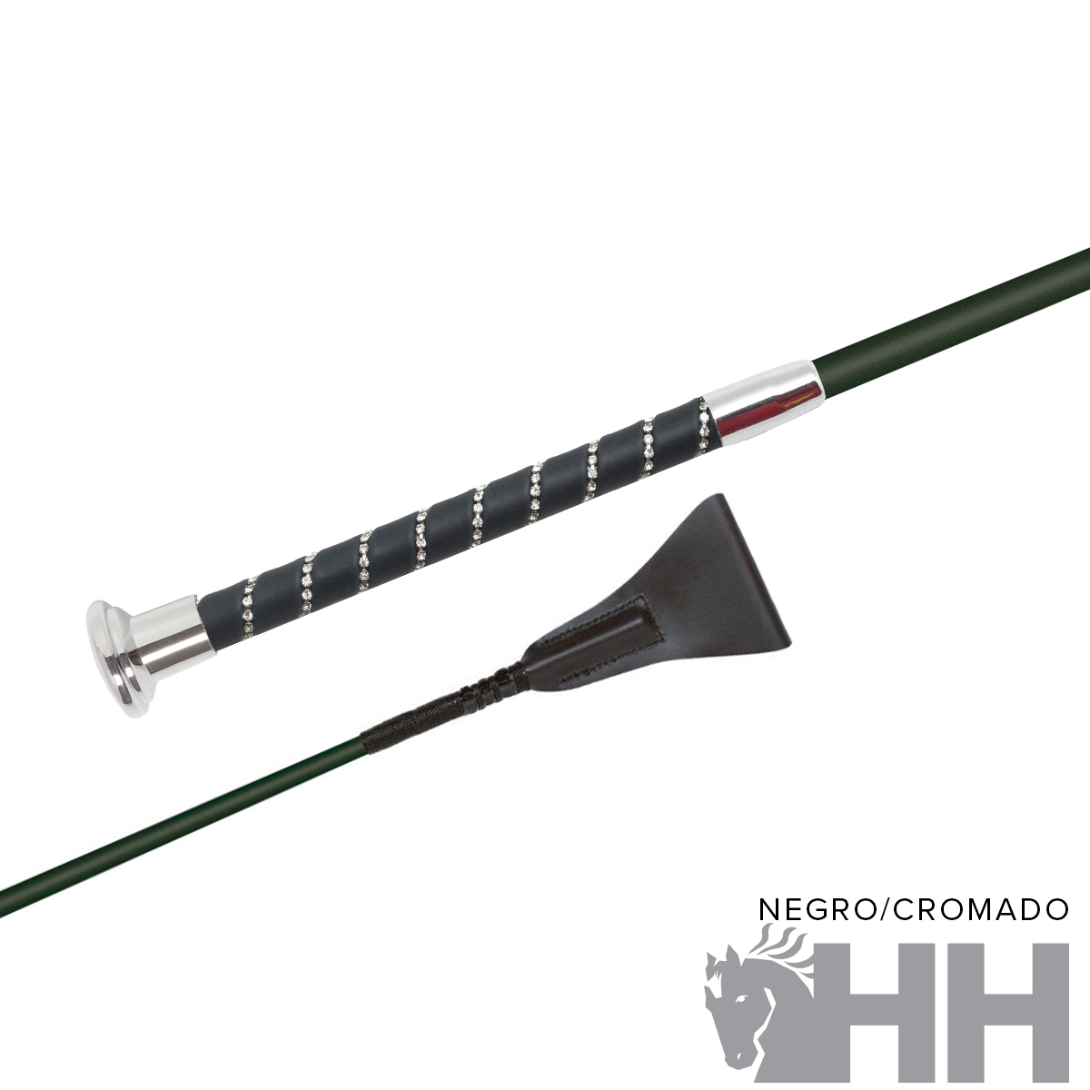 Estructura interna de fibra de vidrio. Empuñadura forrada de tejido sintético muy resistente con suave tacto a seda y con elegantes cristales brillantes. Las piezas metálicas pueden ser en color cromado u oro rosa y como novedad en toda la colección también en azul con cristales en azul.