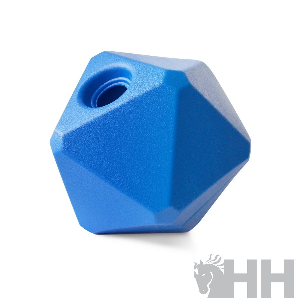 Para mantener ocupado y entretenido al caballo. Diseñado con una forma específica para conseguir que el caballo lo gire en el suelo y así obtenga el premio en forma de alimento o caramelo que previamente hayamos guardado en su interior, a través del agujero. Realizado en plástico muy resistente.