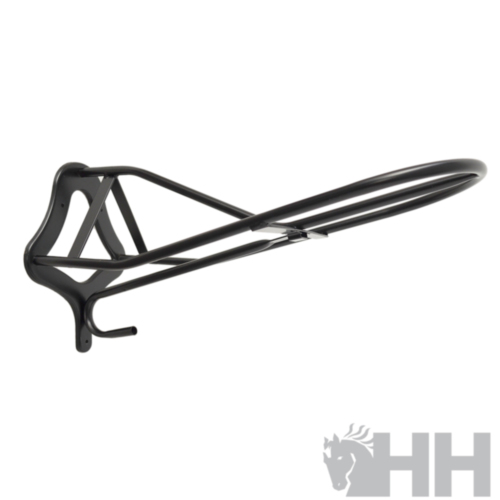 Base ancha y cruz hacia la pared. Gancho portabridas desmontable. Colores: negro y rojo.