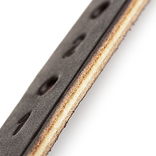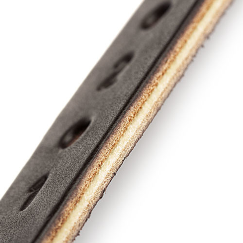 La característica principal es la presencia de una capa central de cuero crudo que impide el estiramiento durante su uso.