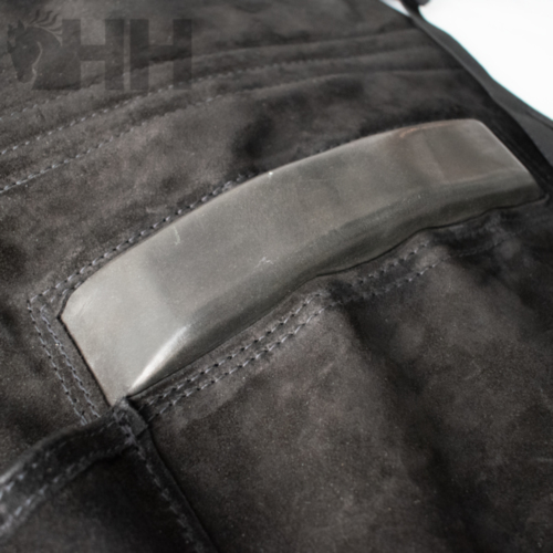 Este innovador delantal de herrador incorpora una patente exclusiva diseñada para sujetar de forma segura las patas y manos de los caballos, facilitando el trabajo y reduciendo el esfuerzo físico del profesional. Fabricado con materiales resistentes pero ligeros, ofrece una excelente protección con un peso mínimo, permitiendo libertad de movimiento durante largas jornadas.