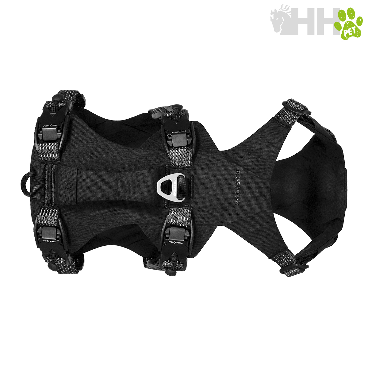 • Tres puntos de fijación para la correa: anilla en V de aluminio y bucle de cinta reforzada en la espalda, así como un bucle de cinta reforzada en el pecho para redirigir a los perros que tiran de la correa.